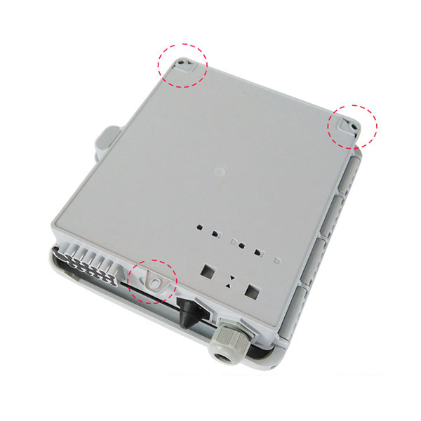 There are total 2 pcs round cable ports for feerder cable go in and out of the fiber nap box with rubber seals, one more is for future use in middle. Construction worker can fix the cable strength members like aramid yarn, aluminum tape, waterblocking layer, etc on the internal cable fixture sheets, with cable clamps or nylon ties. We can change the cable glands into rubber seals for flexible cable termination and distribution.