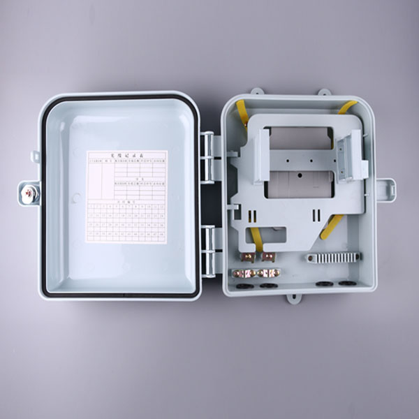 The splitter brackets are fixed on the top with screws, and there is cable berth on both sides, and we can use 2pcs 1*8 splitter or 1pc 1*16 splitter module in this box. SC/UPC or SC/APC connectors are optional.
